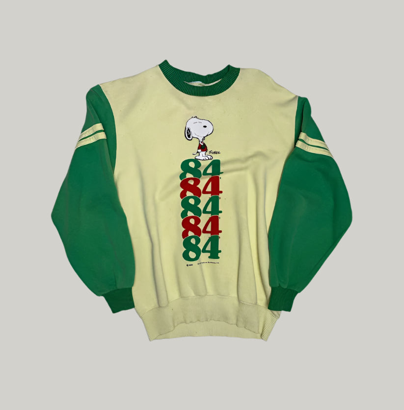 Step back into the 80s with this classic 1980’s Snoopy “84” Sweatshirt. Featuring the iconic Snoopy design, this sweatshirt is a nostalgic piece perfect for vintage lovers. Crafted from a comfortable cotton blend, it offers a relaxed fit ideal for casual wear.