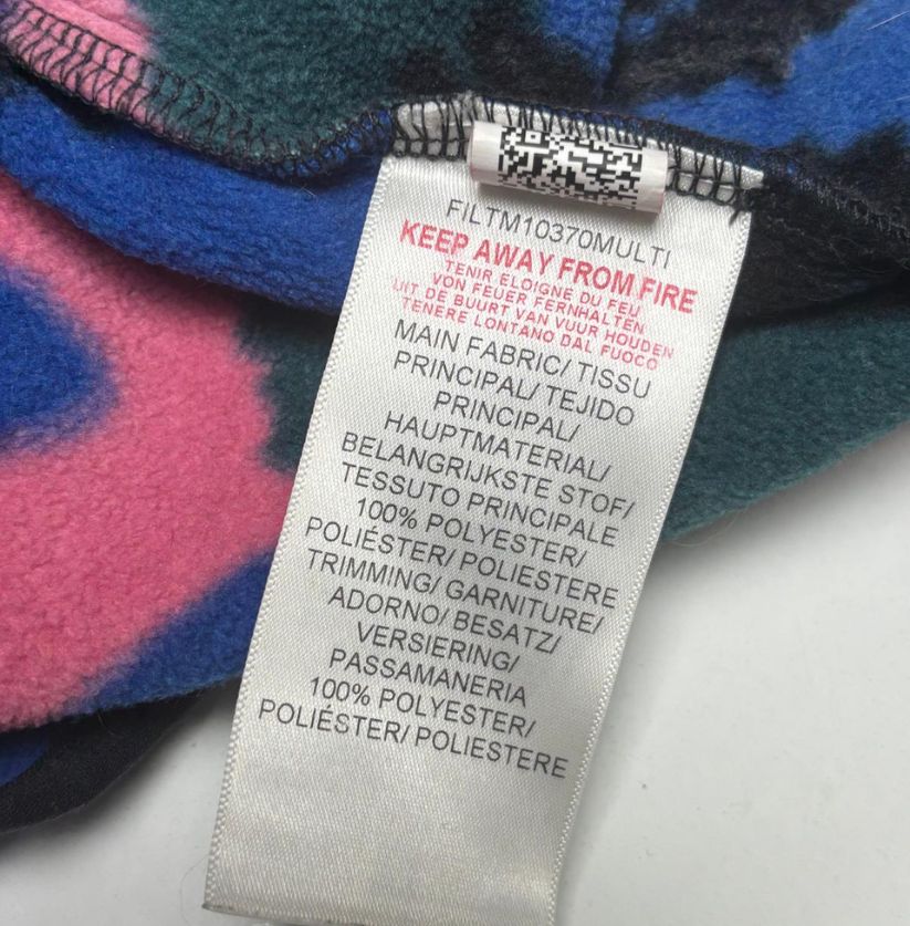 This is a limited edition FILA fleece jacket celebrating the brand’s heritage. It features a bold camouflage-style print in vibrant shades of pink, purple and blue. The jacket is fully zippered and made from soft polyester fleece, offering both warmth and standout visual appeal. Designed in a relaxed XL fit, it reflects FILA’s iconic blend of sportswear and statement design.