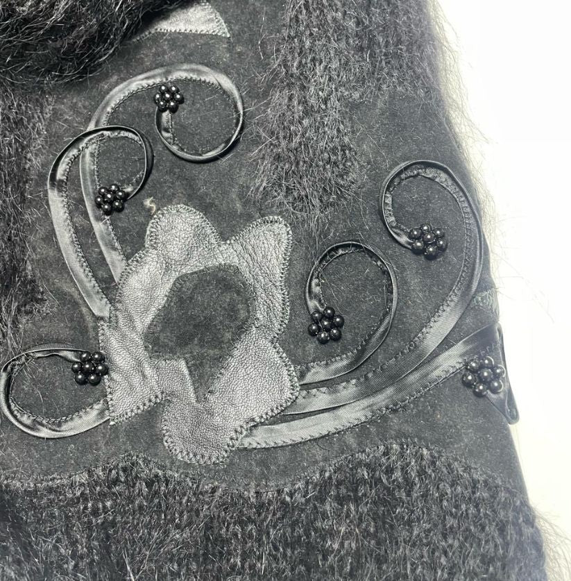This mohair embroidered button cardigan is a beautifully crafted vintage piece, offering both warmth and style. Made from a luxurious blend of 65% mohair and 35% acrylic, it features a soft, fuzzy texture with delicate embroidery details. Perfect for layering, this cardigan adds a cozy yet elegant touch to any outfit.
