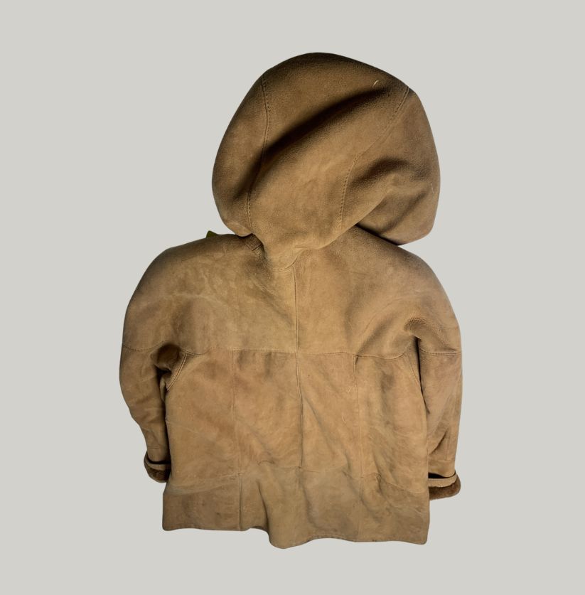 This vintage suede and shearling coat is a timeless outerwear piece combining warmth, comfort, and effortless style. Crafted from soft brown suede and fully lined with plush tan shearling. The coat features a classic button-down front and fold-over cuffs that reveal the shearling lining, adding a touch of vintage charm.